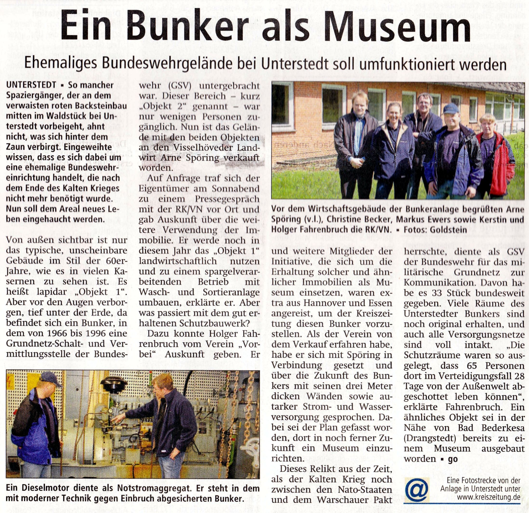 Rotenburg – UNTERSTEDT. So mancher Spaziergänger, der an dem verwaisten roten Backsteinbau mitten im Waldstück bei Unterstedt vorbeigeht, ahnt nicht, was sich hinter dem Zaun verbirgt. Eingeweihte wissen, dass es sich dabei um eine ehemalige Bundeswehreinrichtung handelt, die nach dem Ende des Kalten Krieges nicht mehr benötigt wurde. Nun soll dem Areal neues Leben eingehaucht werden.